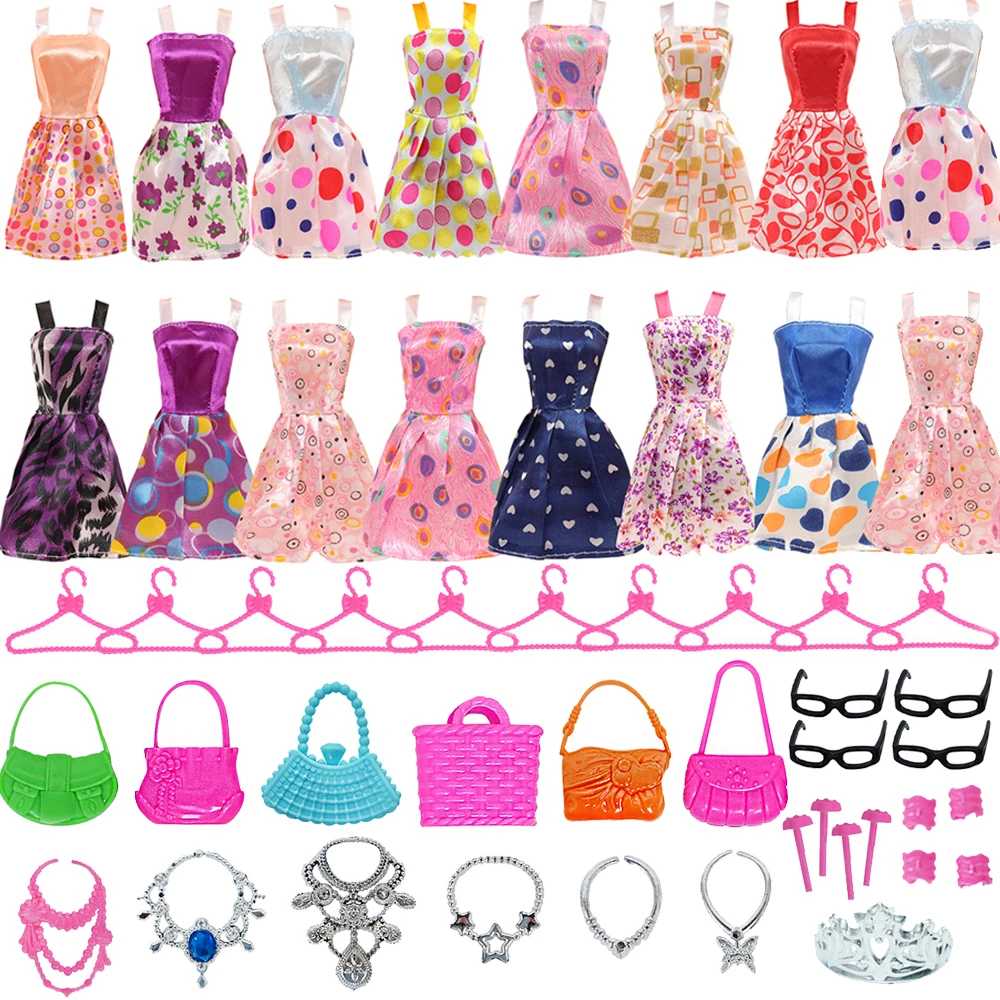 35 шт.набор, аксессуары для кукол = 10 шт., Кукольное платье + 6 ож...