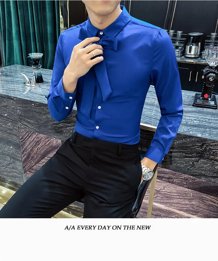 Королевское синее платье, рубашка для мужчин, осень 2021, Корейская тонкая рубашка, мужские свадебные рубашки, Vestido Social Streetwear, рубашка красного и белого цвета для мужчин