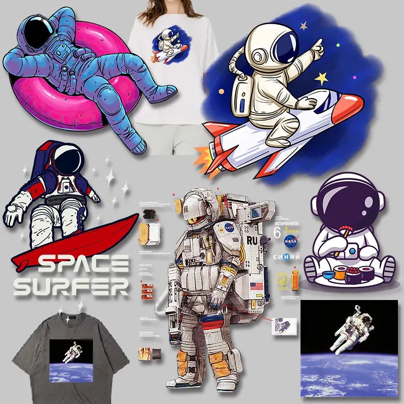 Астронавт Луна Посадка ракета шаблон теплопередачи для одежды Печатный тепловой трансферный ПВХ патч моющиеся аксессуары для одежды