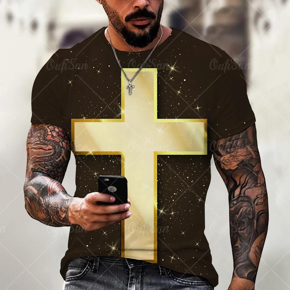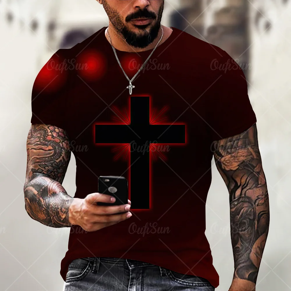 Мужская футболка с 3D-принтом Иисуса, Повседневная Универсальная футболка большого размера с короткими рукавами и круглым вырезом, уличная одежда, Новинка лета 2021