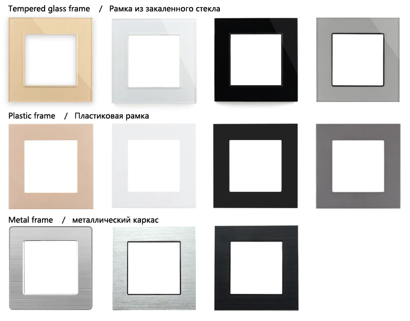 Тип товара: переключатель/модуль розетки/рамкаЦвет: белый/черный/серебристый/золотистыйМатериал панели: поликарбонатНоминальное напряжение: 110-250 ВНоминальный ток: слабый токВключая:Только один модуль