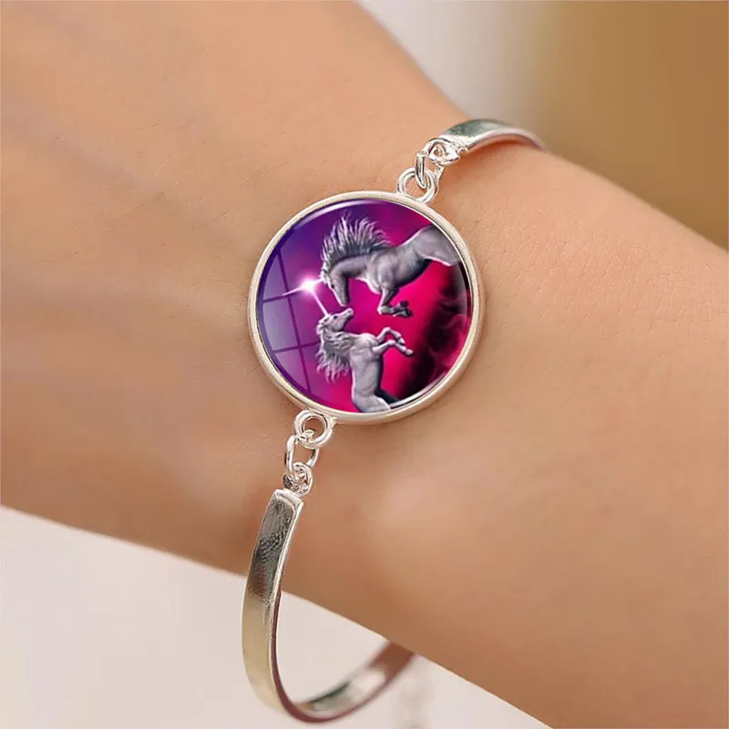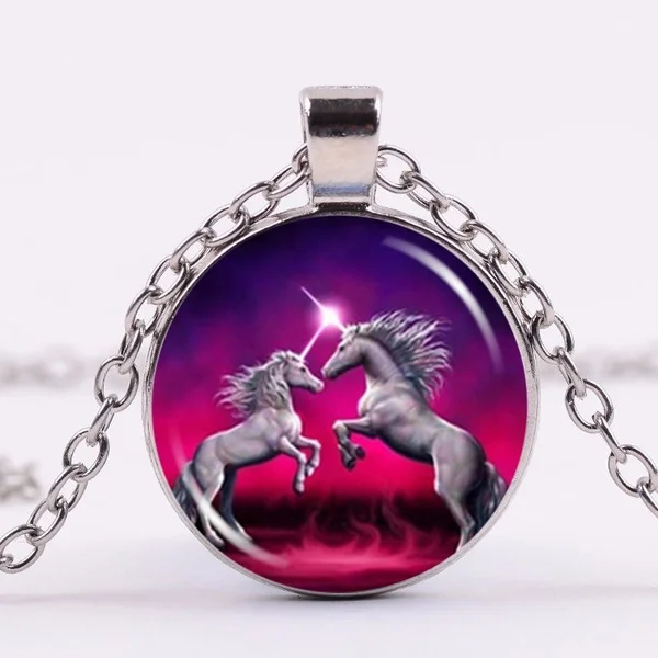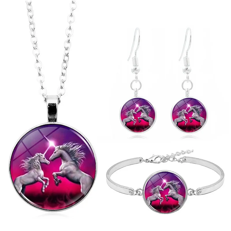 Очаровательный Единорог кабошон стеклянная подвеска ожерелье браслет серьги Ювелирный Комплект всего 4 шт. для женщин модная цепочка для свитера