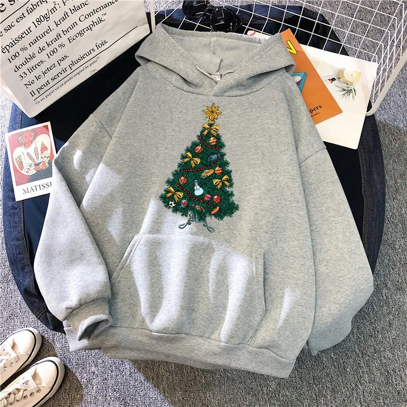 Женская толстовка в стиле колледжа, Осенний теплый свитер, топы, Рождественская модель, женская уличная одежда с длинным рукавом, пуловер оверсайз