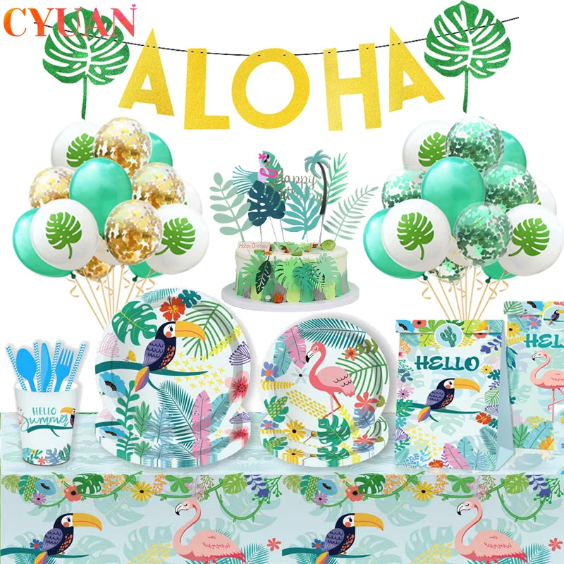 Гавайские вечерние Фламинго тропические воздушные шары посуда украш...