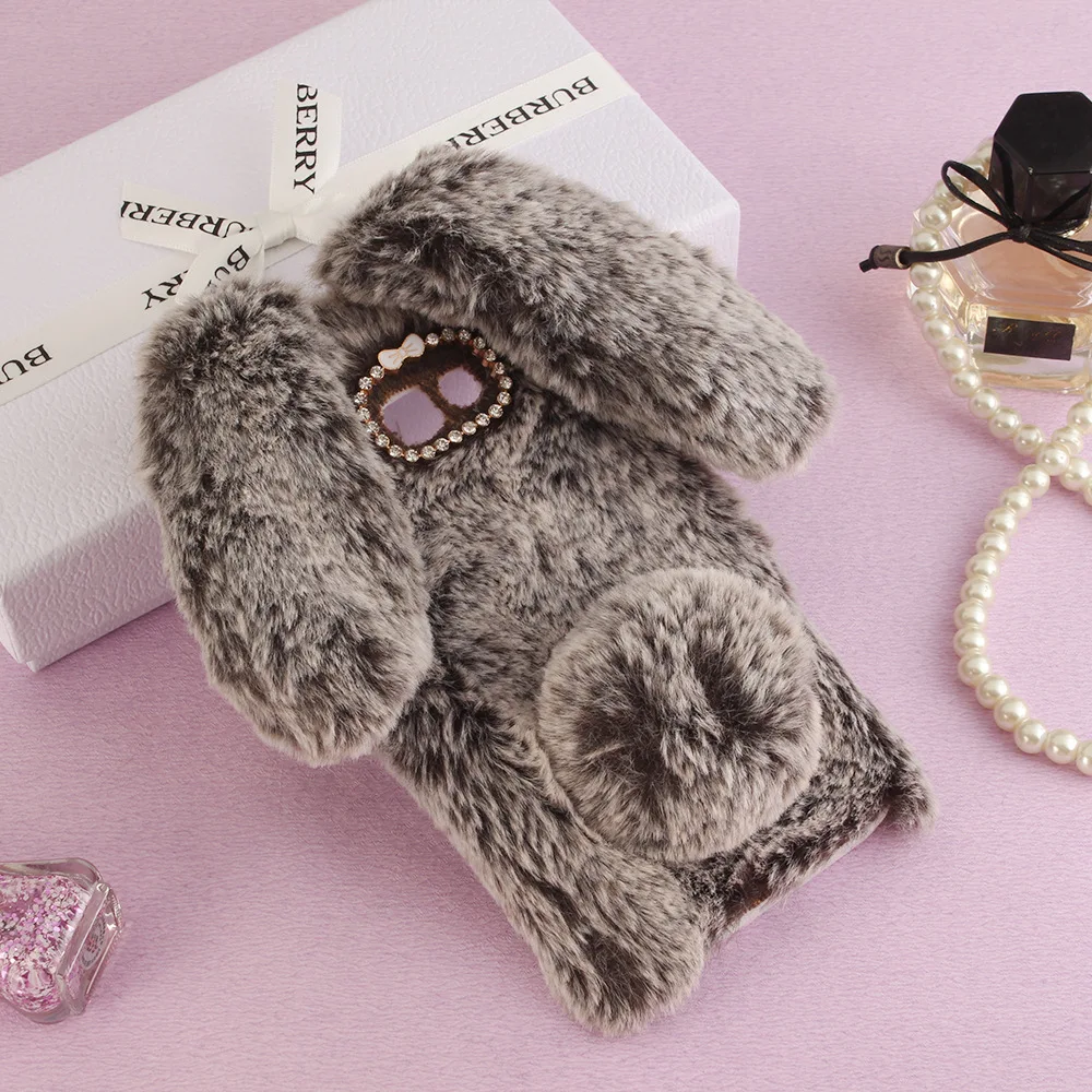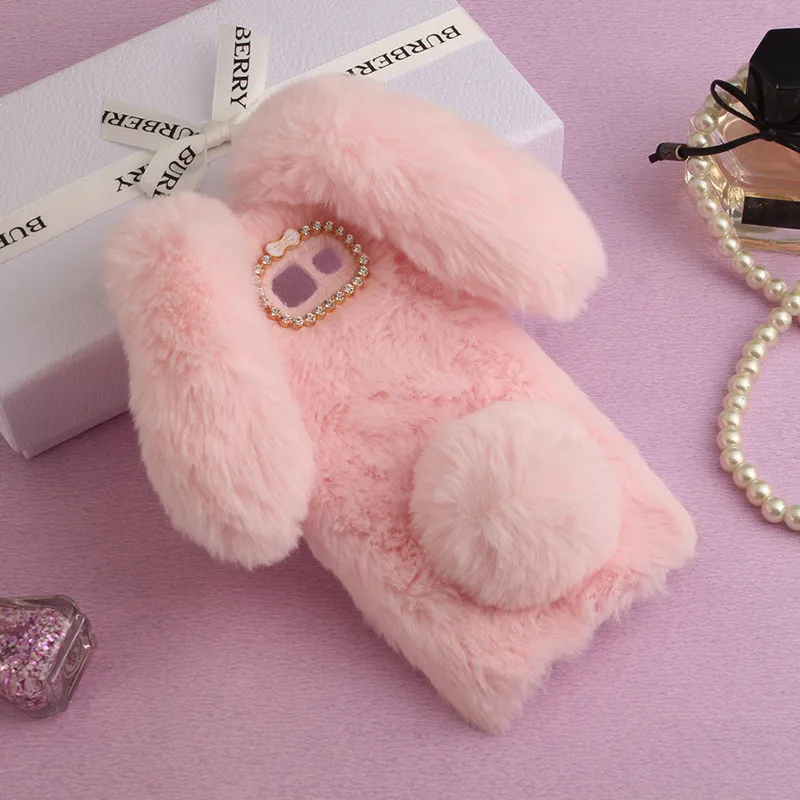 Featuresfashion Fluffy Cute Rabbit Silicone Cover Warm Plush Phone Case