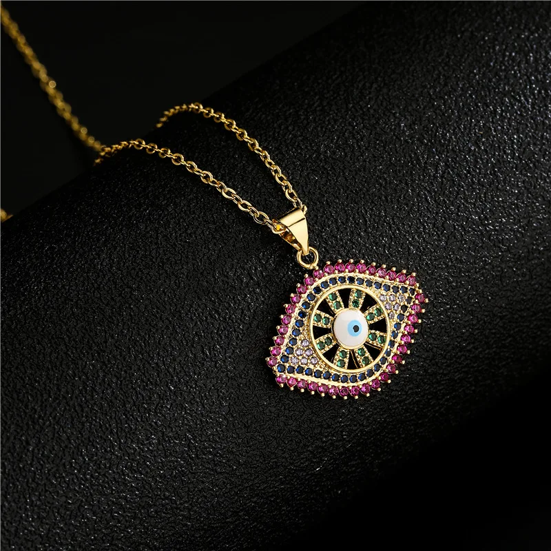 Ожерелье женское позолоченное из нержавеющей стали с цветным кристаллом сглаза