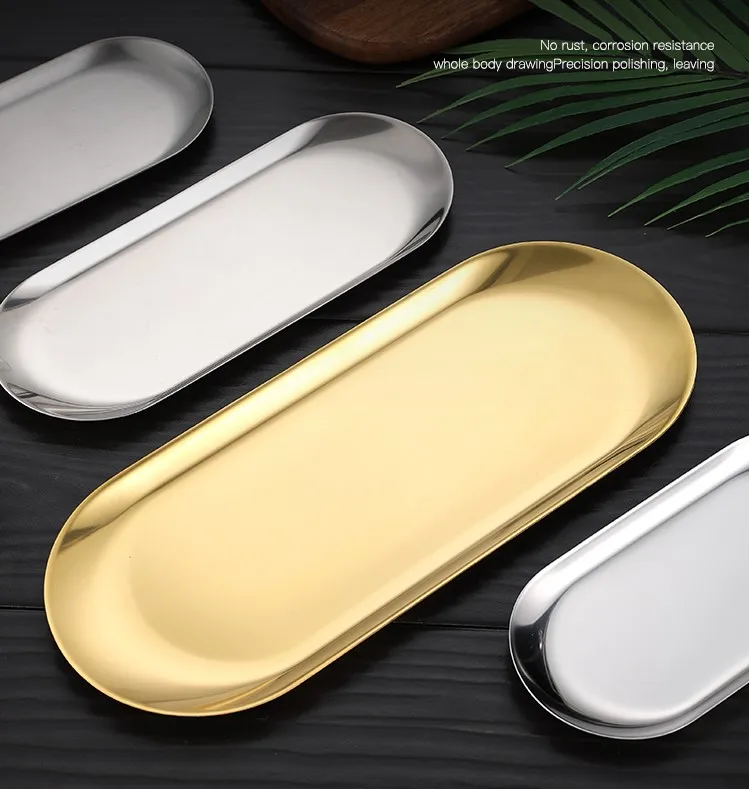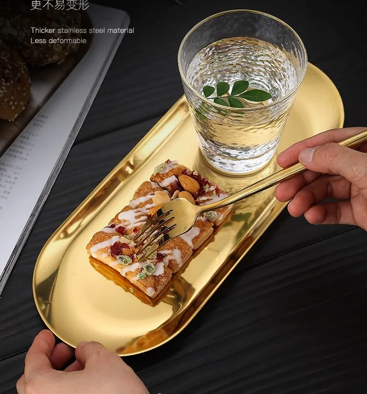 Десертная обеденная тарелка из нержавеющей стали в скандинавском стиле, золотистое, серебристое, искусственное полотенце, поднос для снэков, кухонная тарелка для западного стейка