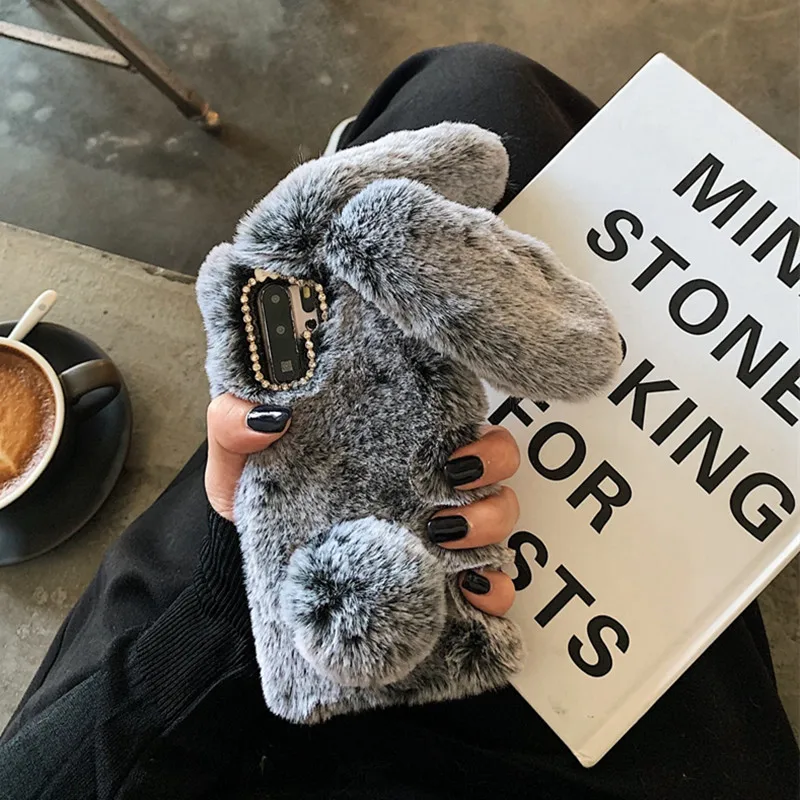 Чехол для телефона Honor 9X Premium 9C 9A, пушистый кролик, милый кролик, плюшевый чехол для Huawei P20 P30 lite Mate 30 Pro honor 30i 9s 20 s 8A