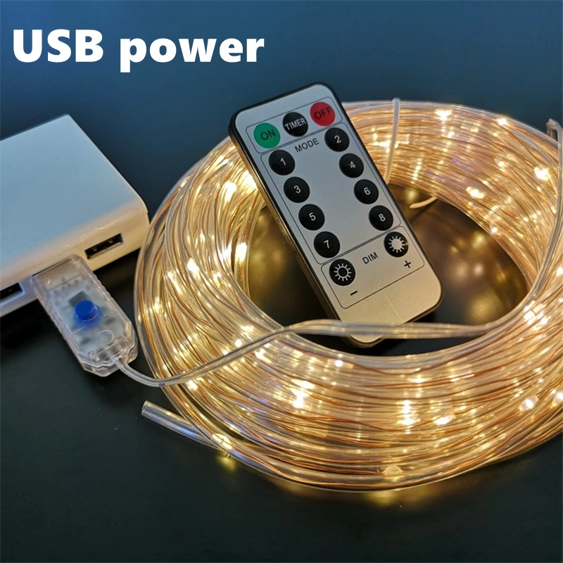Светодиодная трубка веревка, Рождественский светильник, наружная Водонепроницаемая Солнечная вилка, USB Батарея, 8 режимов, уличная Гирлянда для украшения сада, патио