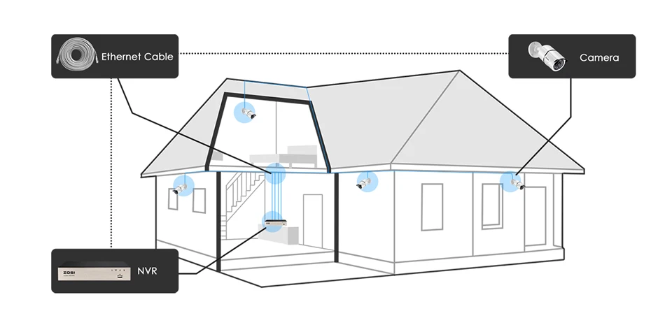 С помощью только одного кабеля ethernet, соединяющего каждую ip-камеру с NVR для передачи питания и видео, система безопасности PoE (power over Ethernet) позволяет вам создать положение камеры в любом месте. Нет необходимости в отдельном адаптере питания для каждой камеры, действительно освобождая вас от грязных и утомительных кабелей.