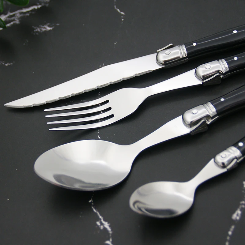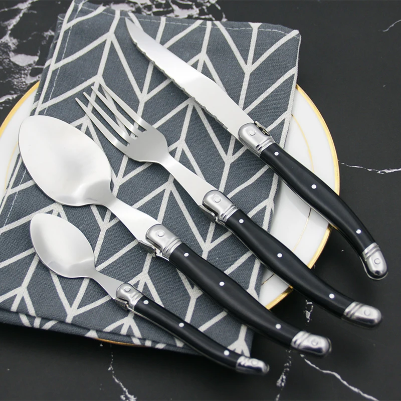 4-24 шт Laguiole черные столовые приборы из нержавеющей стали столовые приборы для ресторана набор посуды черная ручка из АБС столовый нож вилка чайная ложка наборы