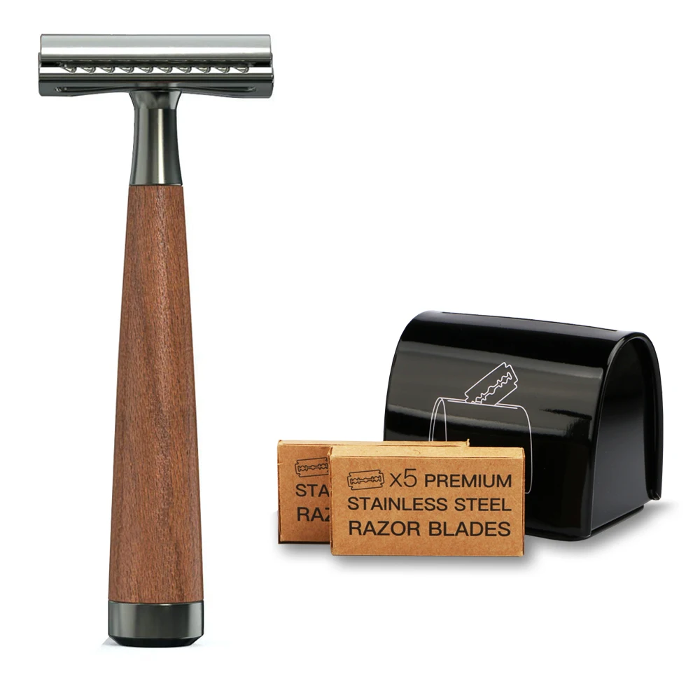 HAWARD двойная Безопасная бритва с имитацией орехового дерева, многоразовая Безопасная бритва унисекс, традиционная бритва с 10 лезвиями