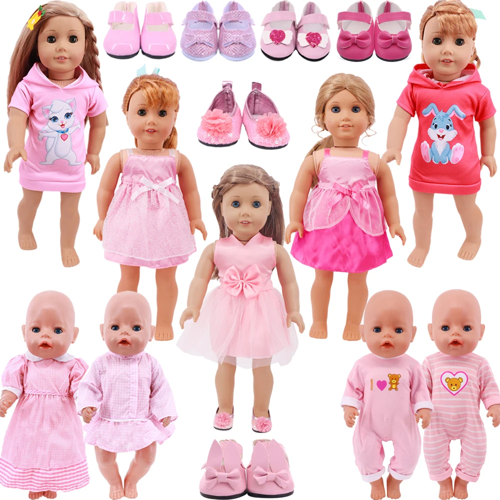 Розовая юбка в виде кролика, платье на бретельках с бантом, обувь для котенка, подходит для 18-дюймовой американской куклы, подарок для новорожденного ребенка 43 см, кукольная одежда, игрушка для девочек