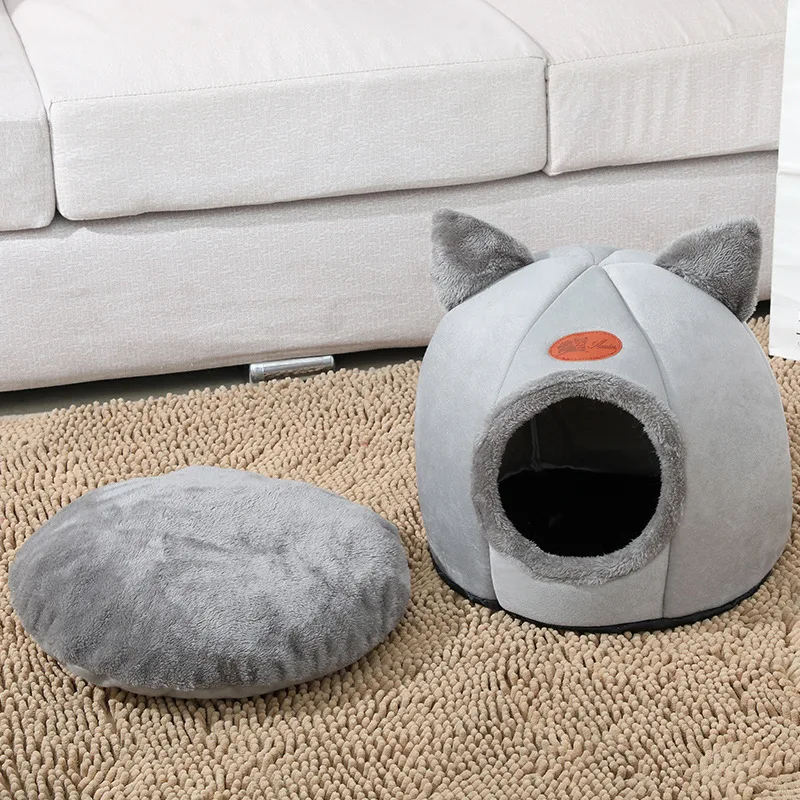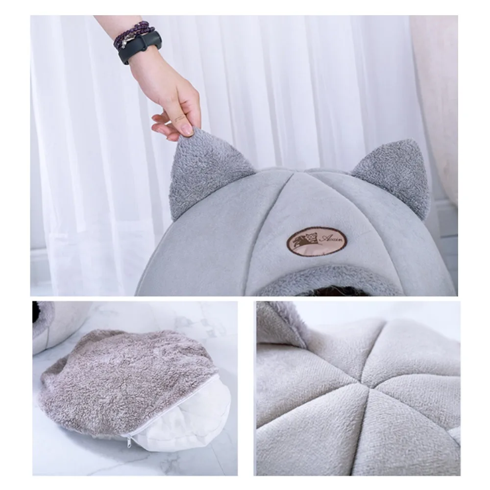 Съемный кошачий домик, зимняя теплая кровать для кошек, набитая полипропиленовым хлопком, для домашних животных, кровати и коврики с нескользящей подошвой