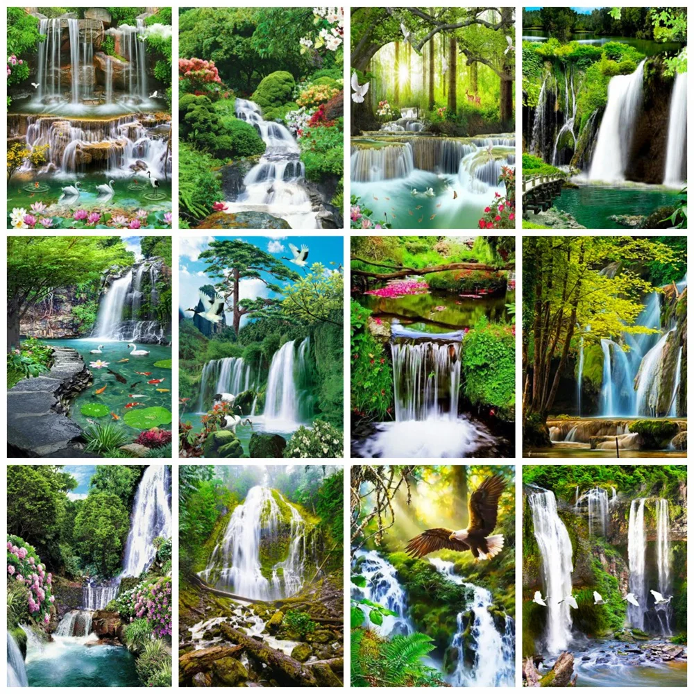 Алмазная 5d картина сделай сам HUACAN, вышивка Водопад, мозаика с мотивом природного леса, домашний декор