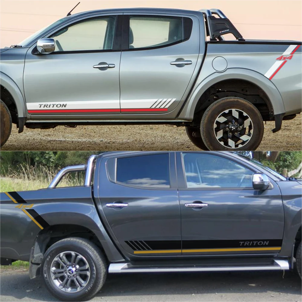 4 шт. наклейки для автомобиля Боковая дверь задний багажник 4X4 полоса виниловая графика для Mitsubishi l200 Triton пикап аксессуары
