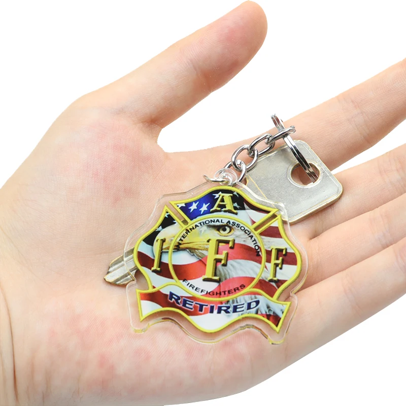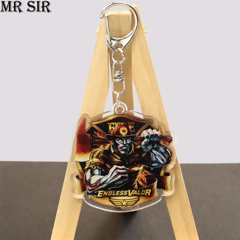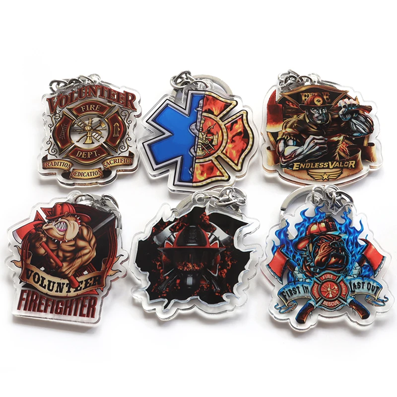 Брелок для ключей Fire Dept из акрила, Подвесные Брелки с американским флагом, Орлом, с мультяшным рисунком пожарного, полезные ювелирные изделия, подарок для мужчин