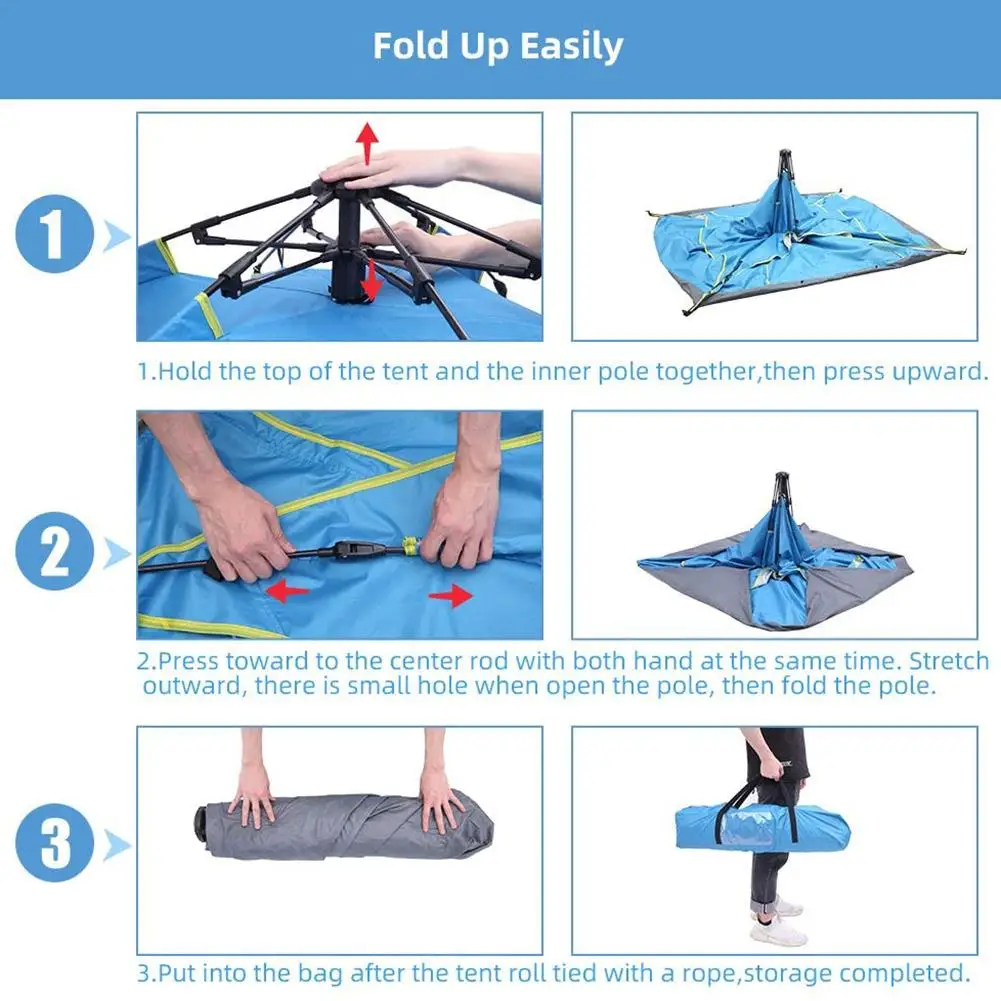 Пляжная складная палатка, автоматическая выдвижная палатка на 2-3 человек, водонепроницаемая, ветрозащитная и солнцезащитная, для отдыха на открытом воздухе, кемпинга или путешествий