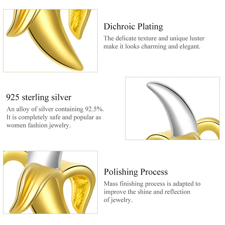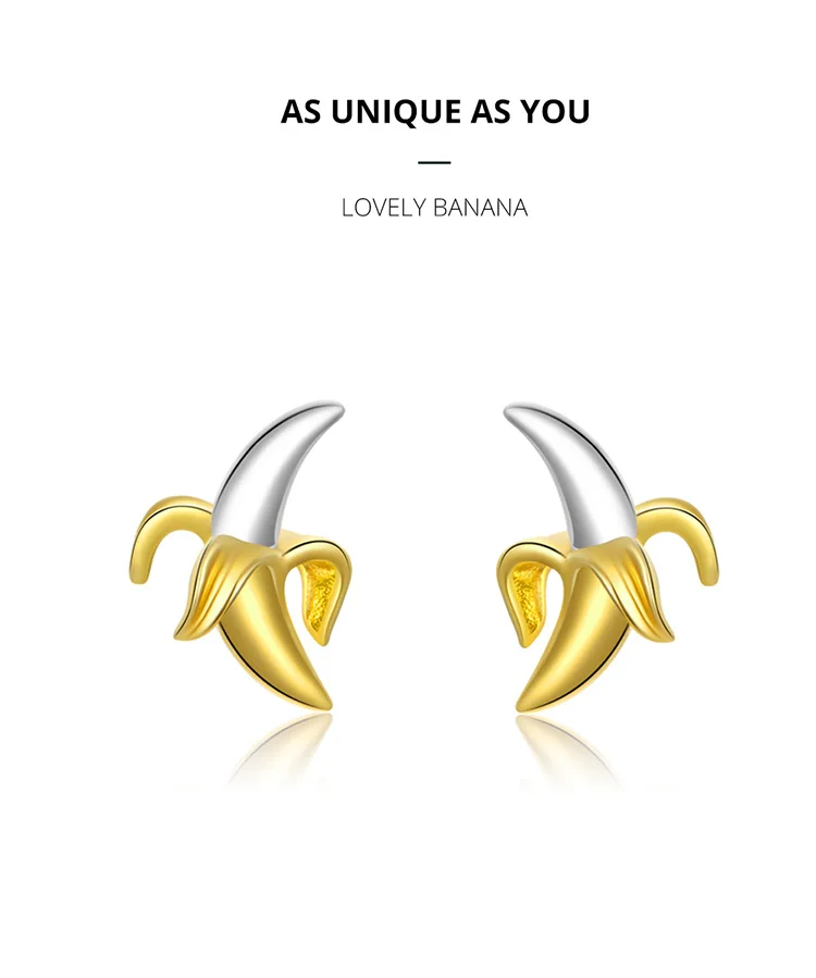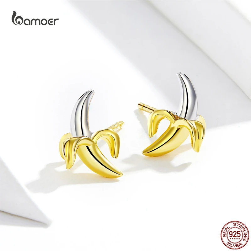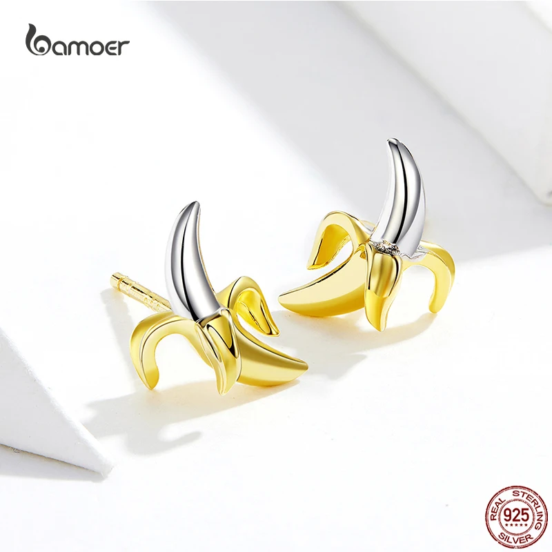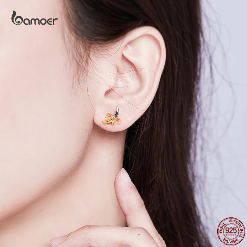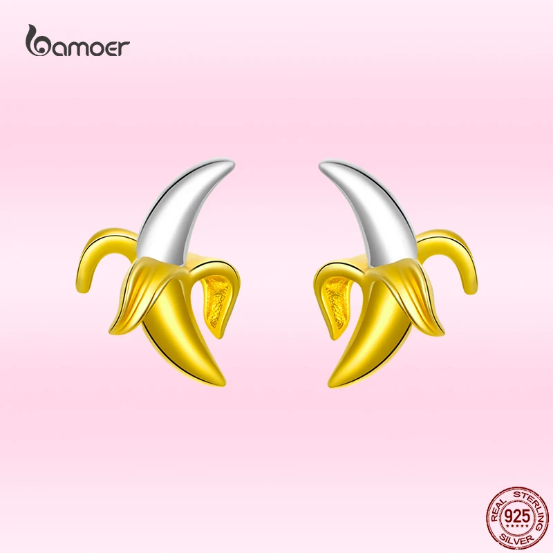 Bamoer модные милые серьги в форме бананов для девочек из настоящего серебра 925 пробы с желтыми фруктовыми ушками, ювелирные изделия на День святого Валентина