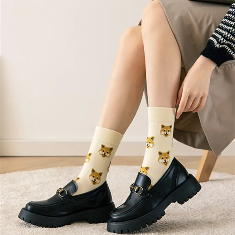 Новинка милые носки с изображением собаки средней длины креативные женские носки в японском стиле Шиба-ину далматинский фаллоимитатор Тедди Померанский дропшиппинг