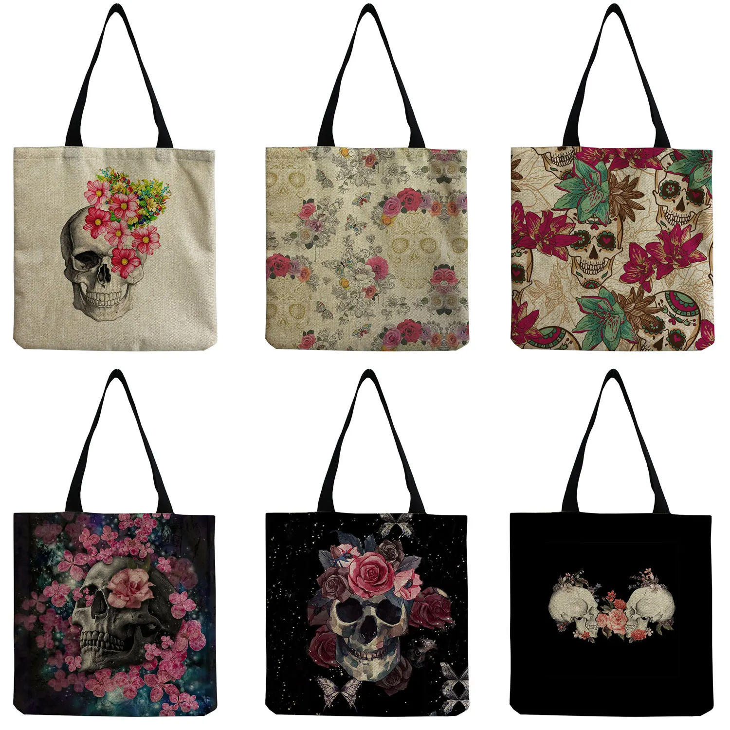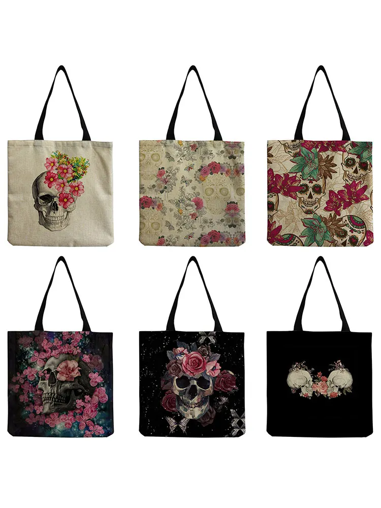 Экологичная многоразовая сумка для покупок с цветочным принтом и морским черепом, Вместительная дорожная сумка на заказ, модная сумка на плечо, сумка для Хэллоуина