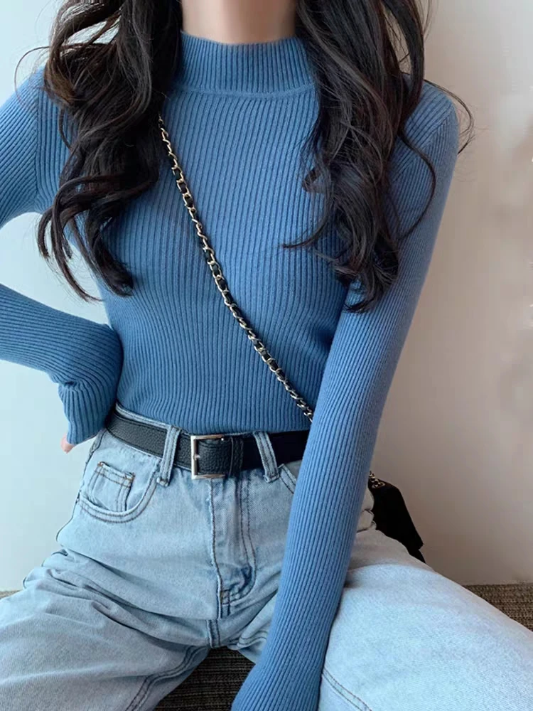 Элегантный Однотонный свитер в Корейском стиле, Осень-зима, водолаз...