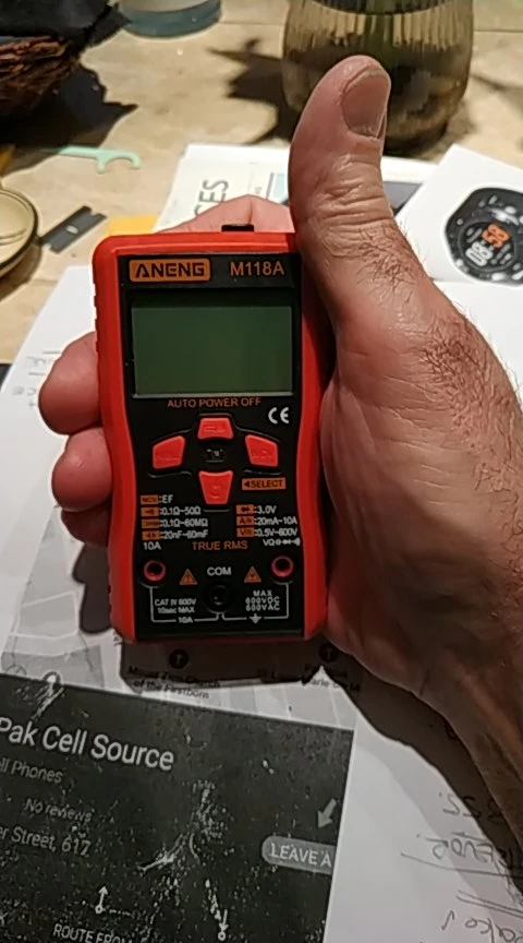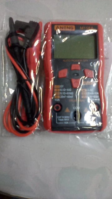 Слабый фонарик, щупы, датчик скрытой проводки, контакты в батарейном отсеке. Не разбирался плотно, но переменный ток как-то странно измеряет и напряжение не очень точно. Из плюсов удобный, компактный, емкость, сопротивление, постоянку более менее точно измеряет, автоотключение работает, но алгоритм непонятен. Упакован был плохо(без коробки, в пупырчатом пакете), платил 607р, для дома сойдет.