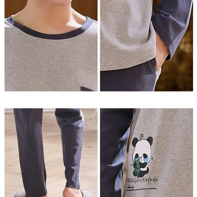 Хлопковый пижамный комплект с длинным рукавом для мужчин, милая зеленая мультяшная Мужская одежда для сна, осенняя теплая Повседневная Домашняя одежда, штаны в клетку, пижамы