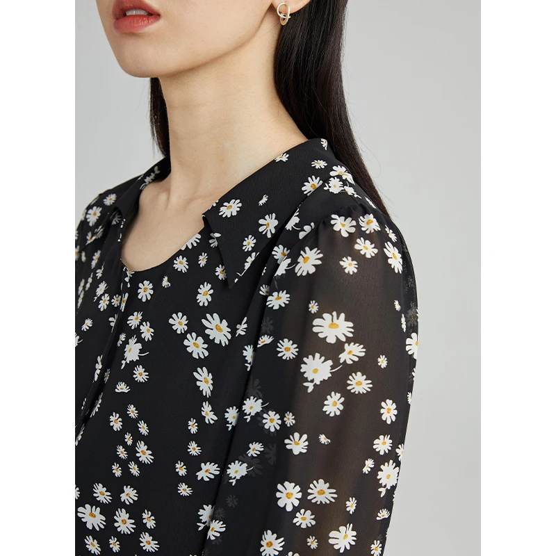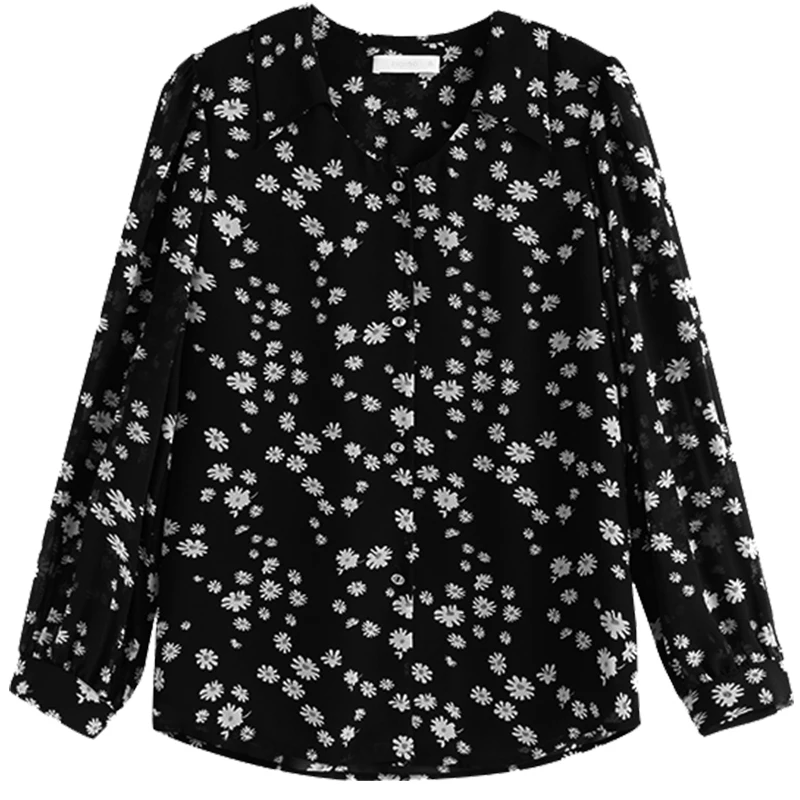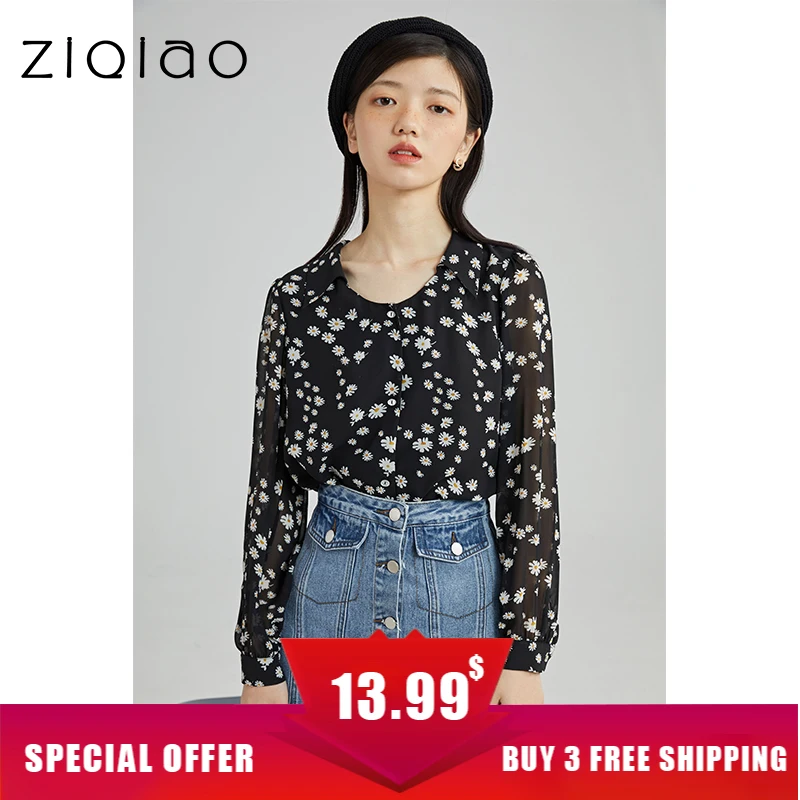 ZIQIAO, японская женская черная шифоновая рубашка с маргаритками, дизайнерские топы с вырезом