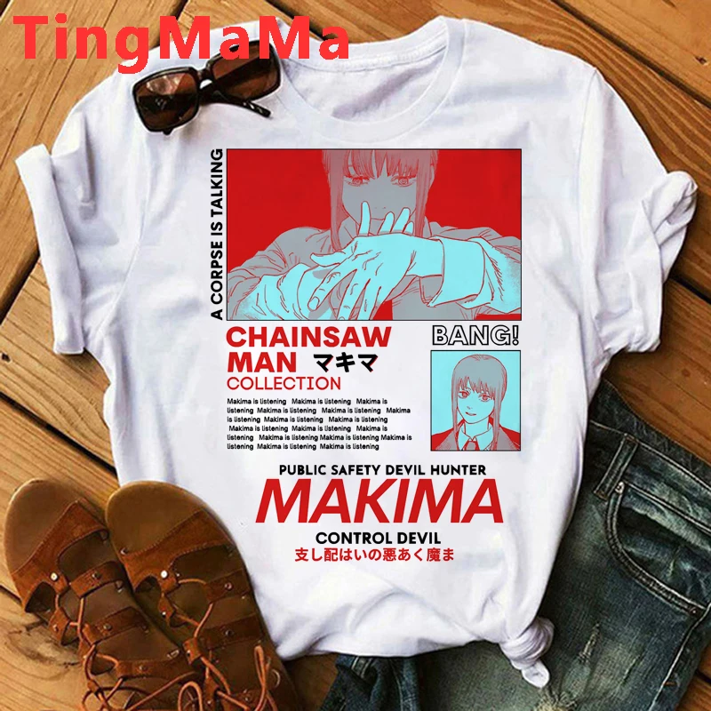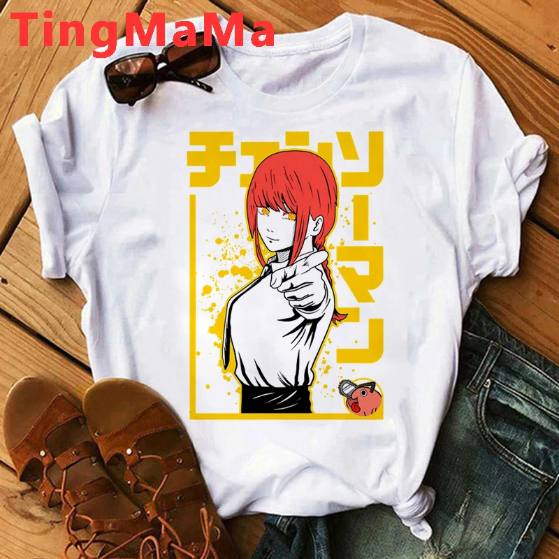 Горячая японская аниме бензопила мужская футболка мужская Kawaii Cartoon Makima Графические футболки Pochita повседневные Harajuku унисекс Топы Футболка мужская
