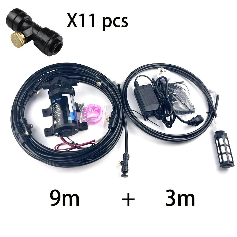 Система запотевания 9 м1 шт. Электрический микро насос1 шт. адаптер питания2x шт Разъемы для насоса и системы запотевания3 м х водяной шланг со стандартом6 м х Собранный запотевающий шланг11 x шт сопло сидений11 x шт латунные насадки для запотевания30 шт. зажимы для седла30 х шт Кабельные стяжки1 шт. инструкция по эксплуатации