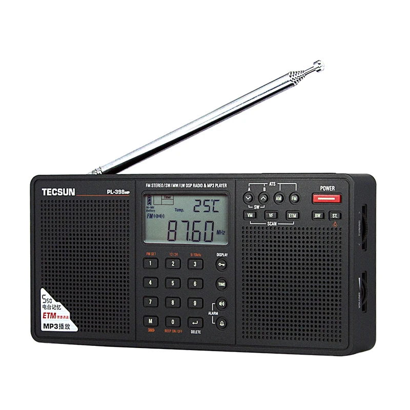 ●7 种选台方式任选:便捷调谐(ETM),自动搜索浏览电台频率,自动搜索浏览已存电台,手动搜索电台频率(VF),手动搜索已存电台 (м),直接输入频率数字,直接输入已存电台地址数字.其中便捷调谐(ETM)是德生为提高收台效率而研发的收台方式