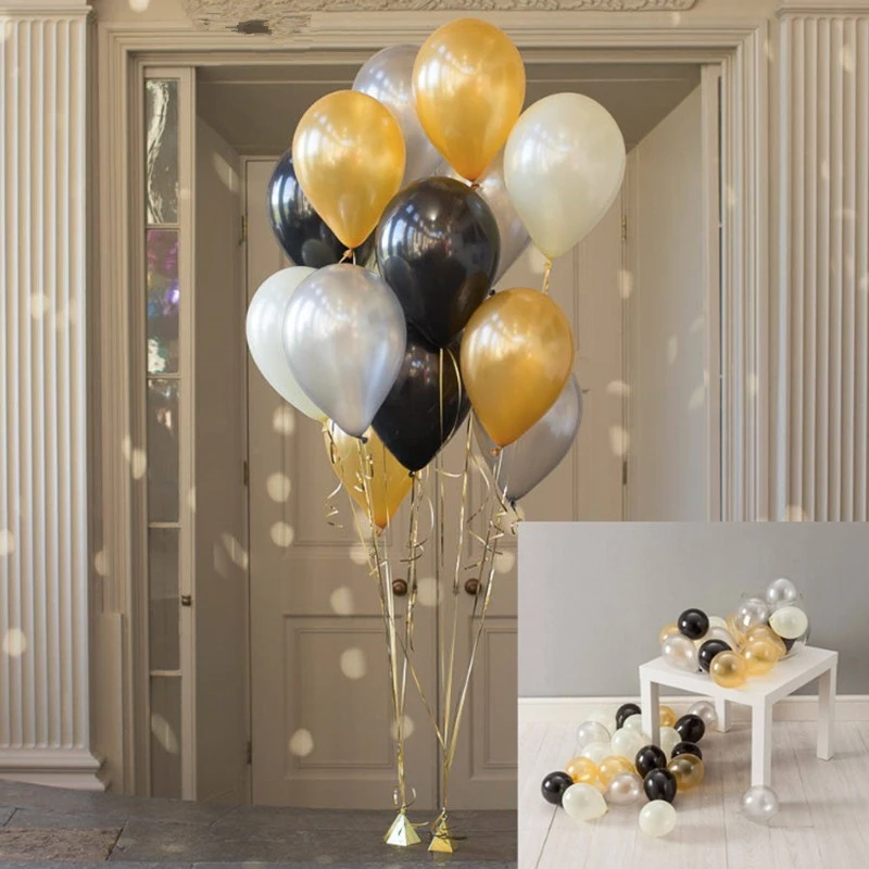 Шары воздушные латексные, золотистые, черные, белые, 10 дюймов, 1,5...