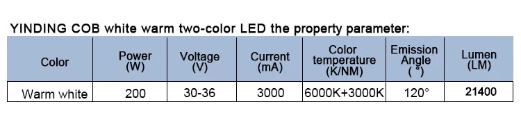 1 шт. YINDING COB Белый теплый двухцветный 200 Вт чип высокой мощности 6000K + 3000K наружное освещение, внутреннее освещение