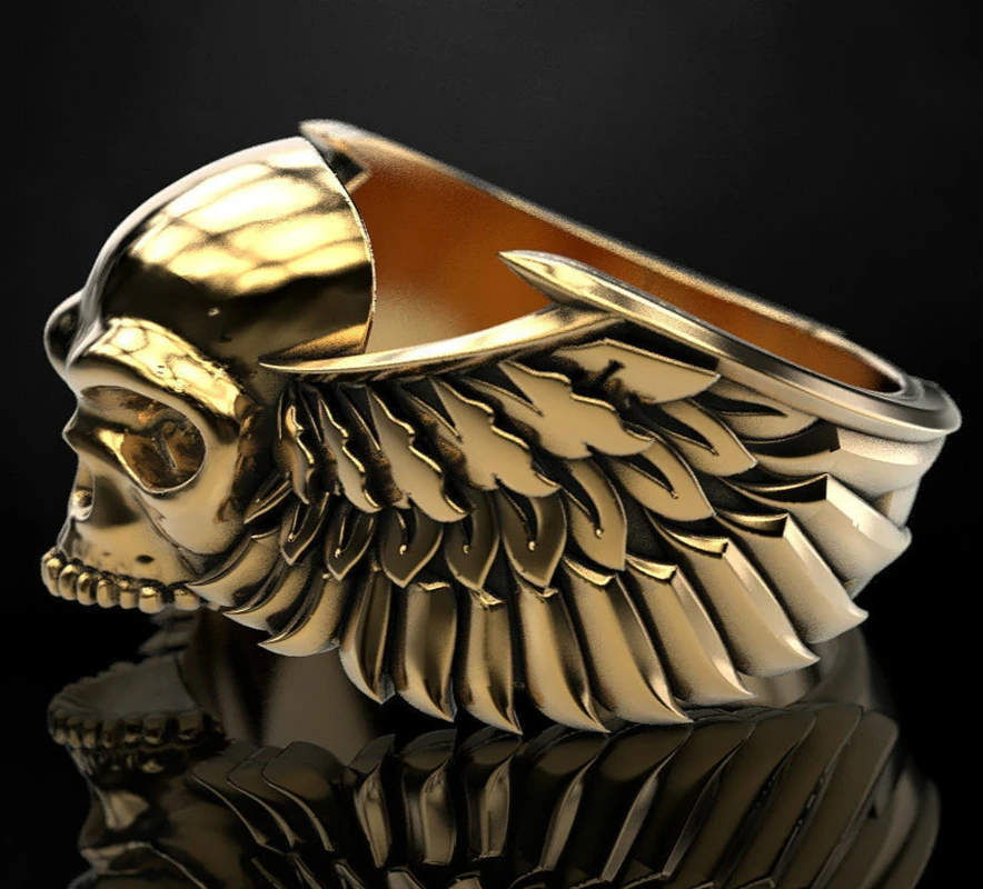 Мужская мода классическое Золотое крыло властителя демон Череп Рок партия локомотив случайный подарок кольцо