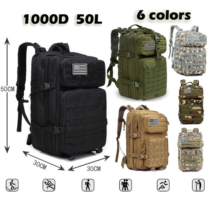 Рюкзак для активного отдыха, военные рюкзаки, тактический Спорт, кемпинг, пеший туризм 50 л 1000D нейлоновая водонепроницаемая сумка для трекинга, рыбалки, охоты