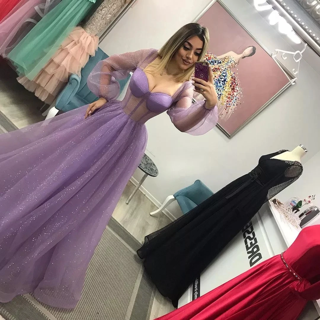 Платье для выпускного вечера из тюля Sevintage, блестящее вечернее платье с длинным рукавом и иллюзионным лифом, с открытыми косточками