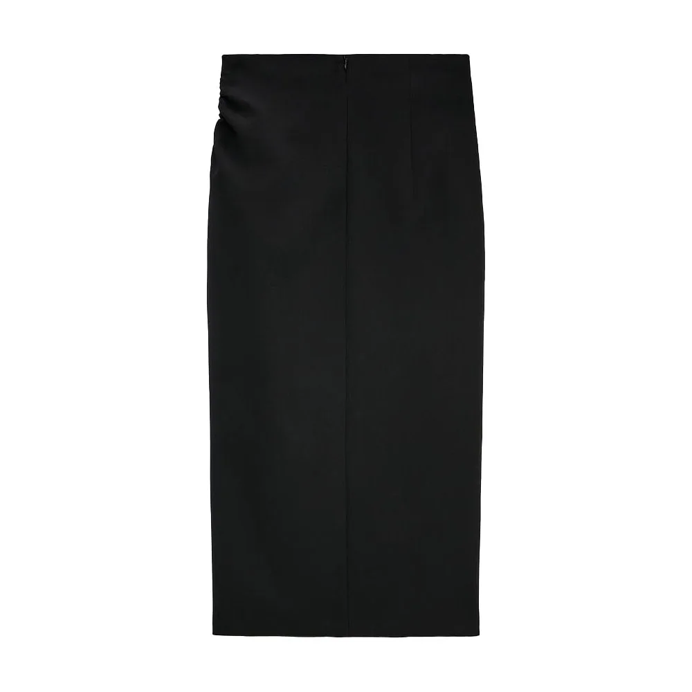 Женская модная универсальная Облегающая Юбка-миди ZA, прямая юбка средней длины с высокой талией и разрезом, в складку, на осень