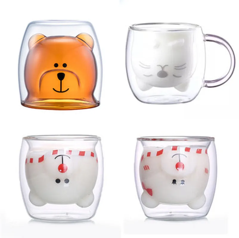 250 мл стеклянные кружки милый медведь кошка животное Двойная Стенка стеклянная кружка двухслойная стеклянная молочная кружка кофейная чашка Рождественский подарок