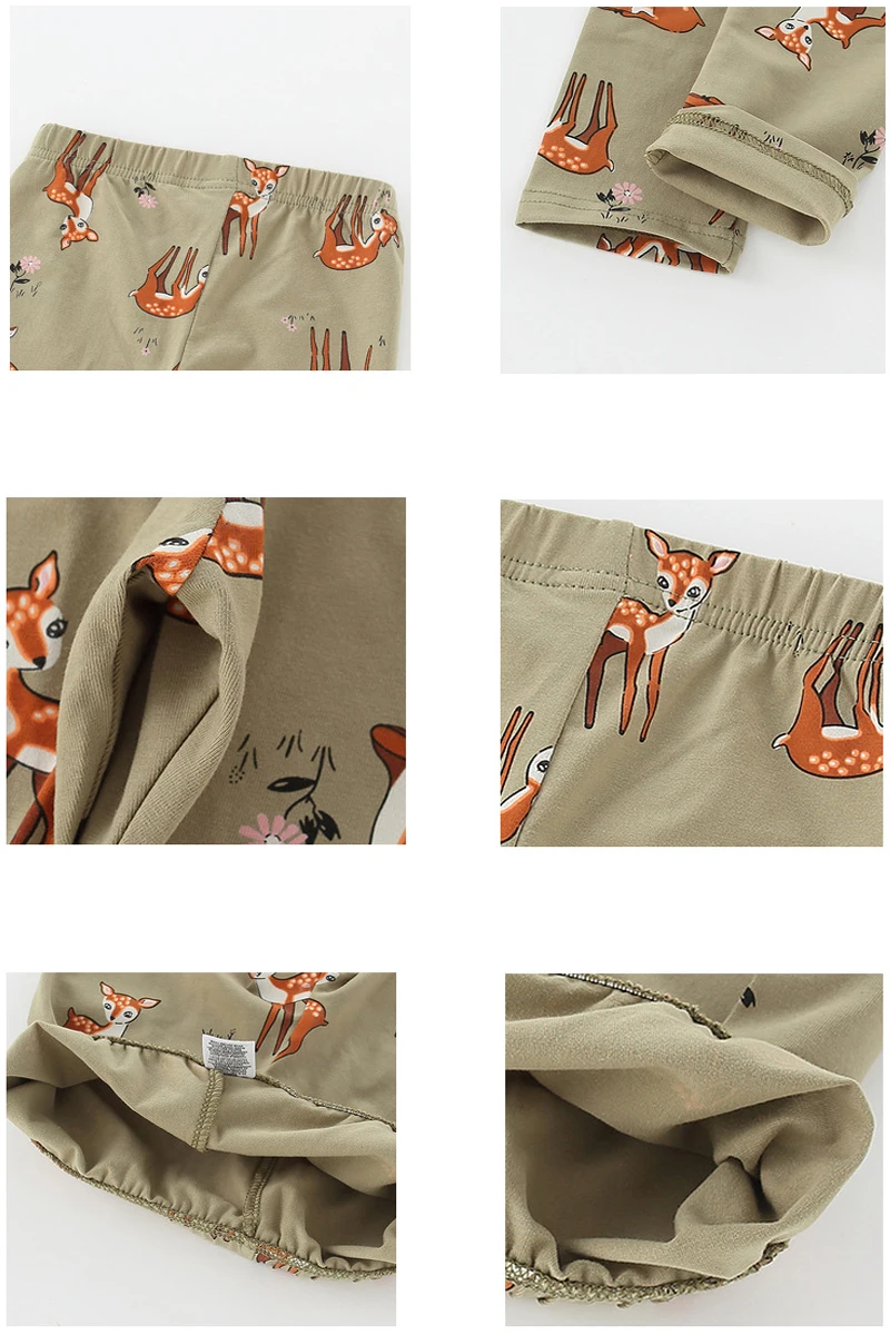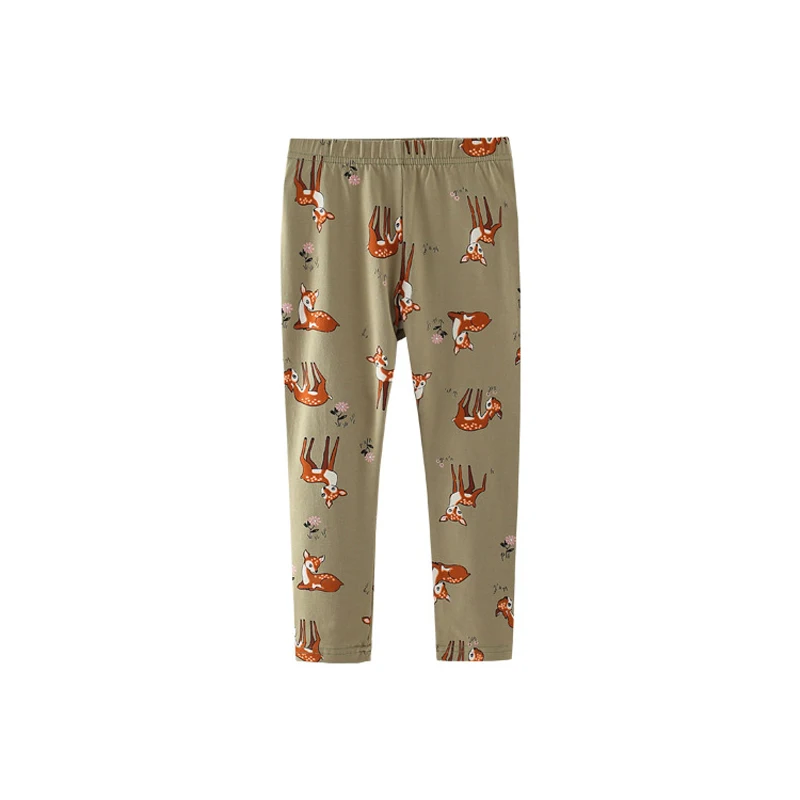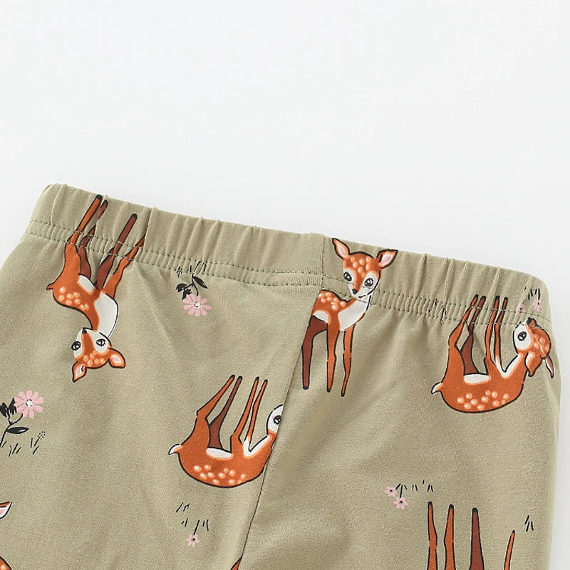 Леггинсы для девочек 2-7 лет, из мягкого дышащего хлопка, с изображением цветов и оленей