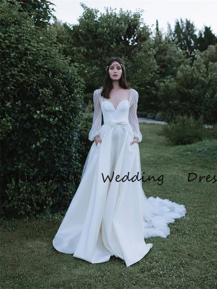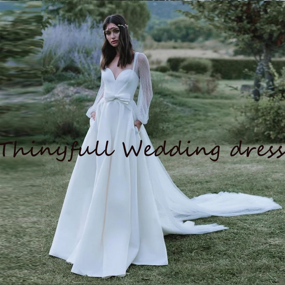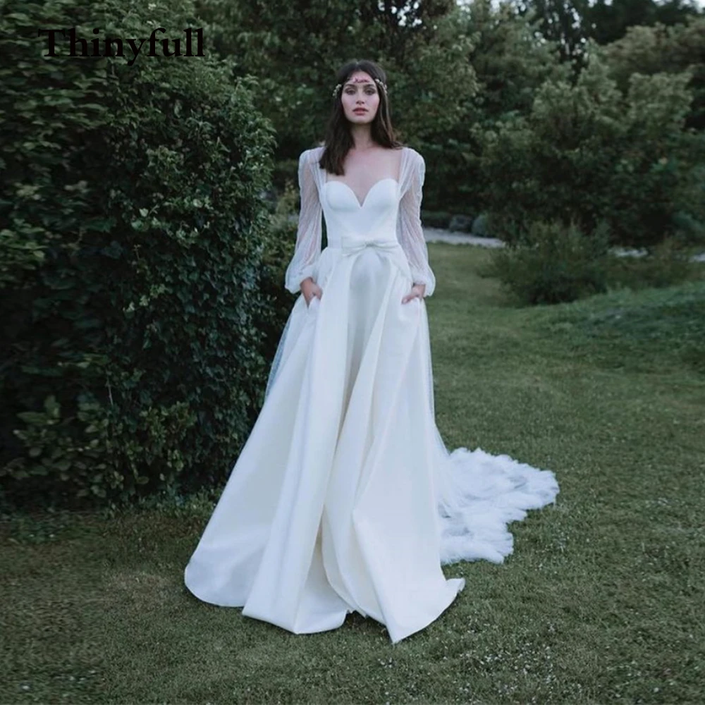 Thinyfulll модные блестящие свадебные платья а-силуэта с длинным ру...