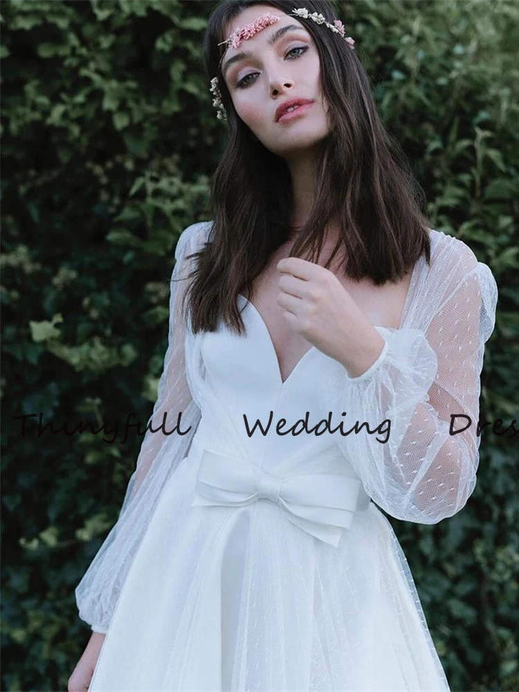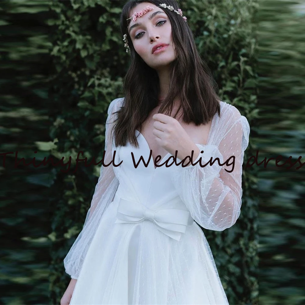 2 шт., трапециевидные Свадебные платья с длинным рукавом и бантом