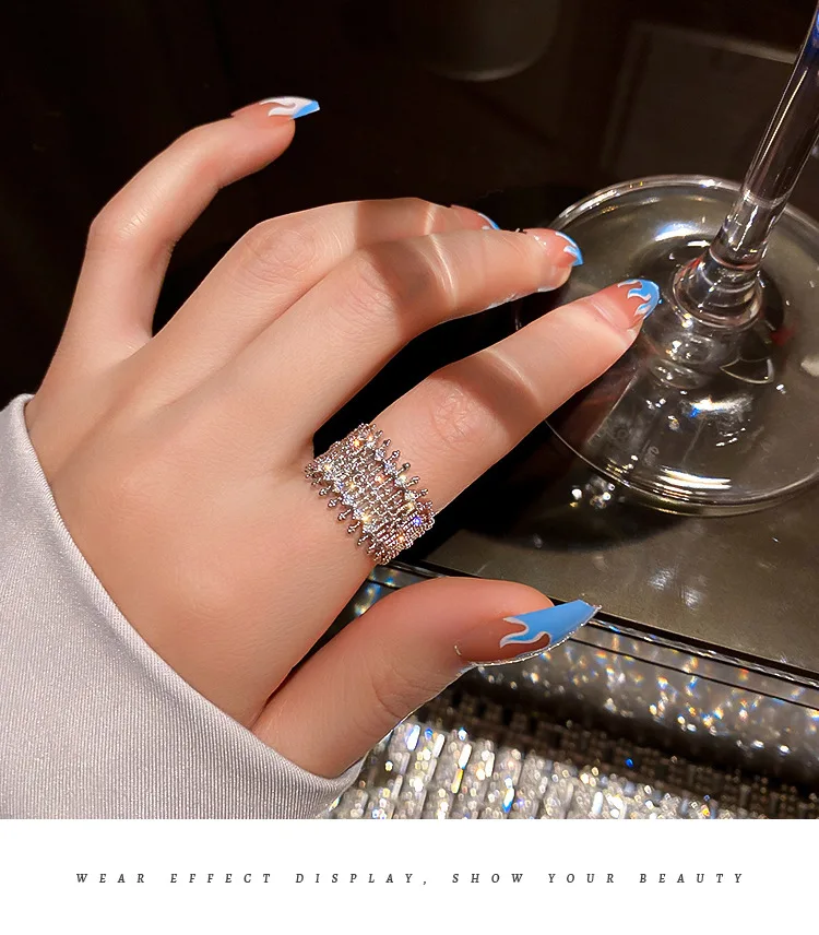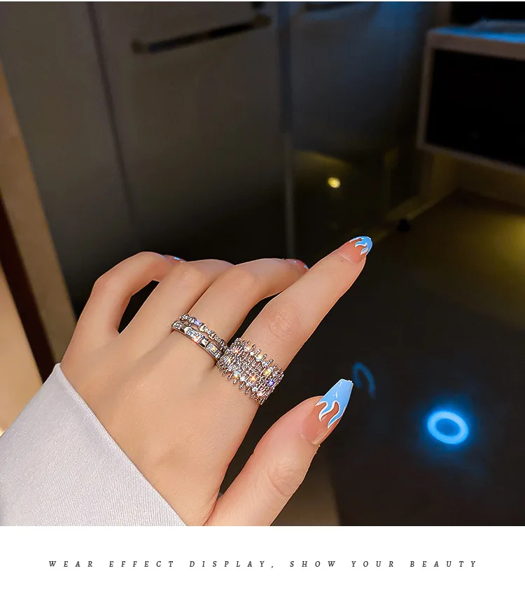 Модное Открытое кольцо с геометрическим узором и бриллиантами в Корейском стиле женское характерное изысканное кольцо