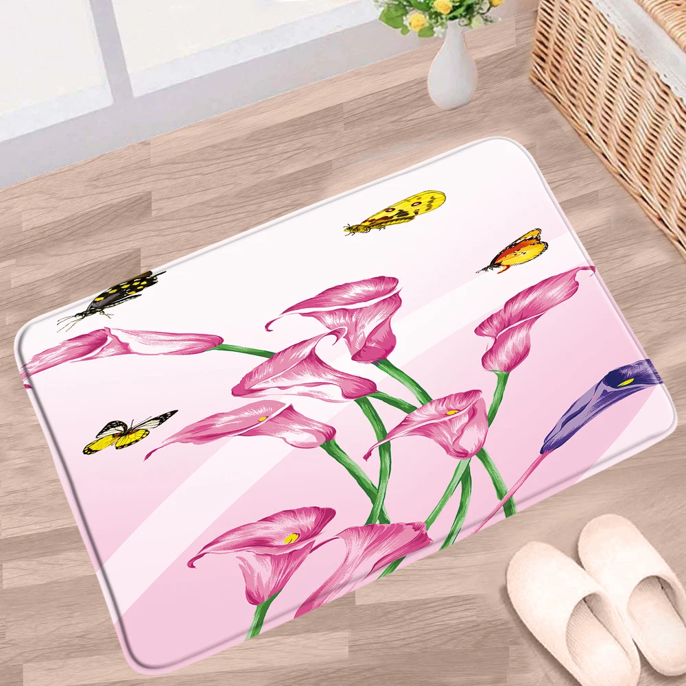 Коврик для ванной с цветами растений, нескользящий ковер с розовыми, розовыми, зелеными листьями, современный красивый с цветами, домашний декор, для кухни, прихожей, коридора