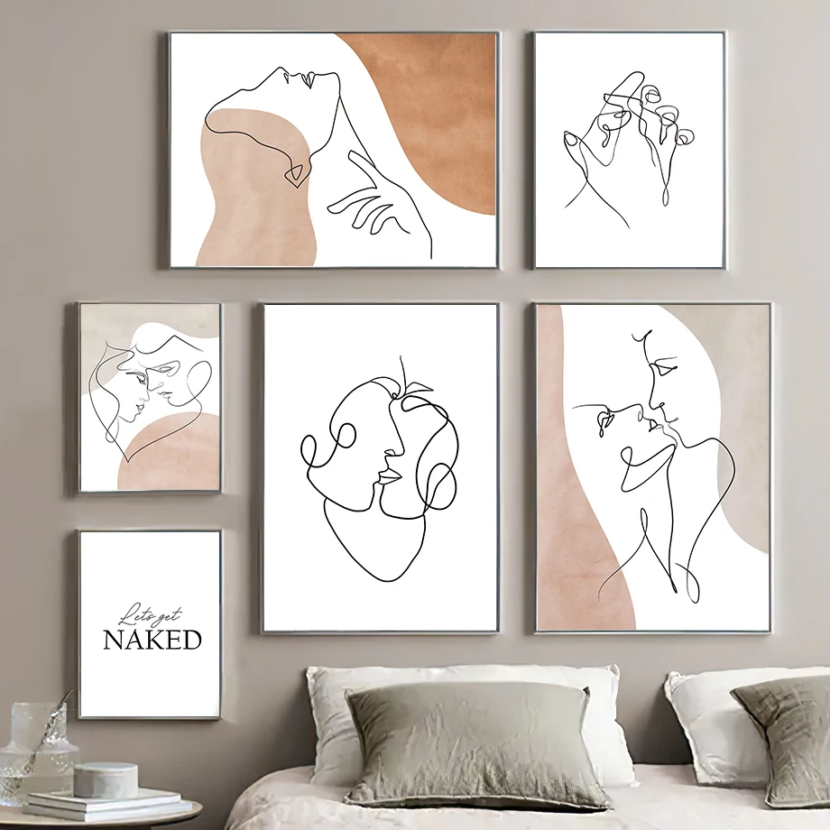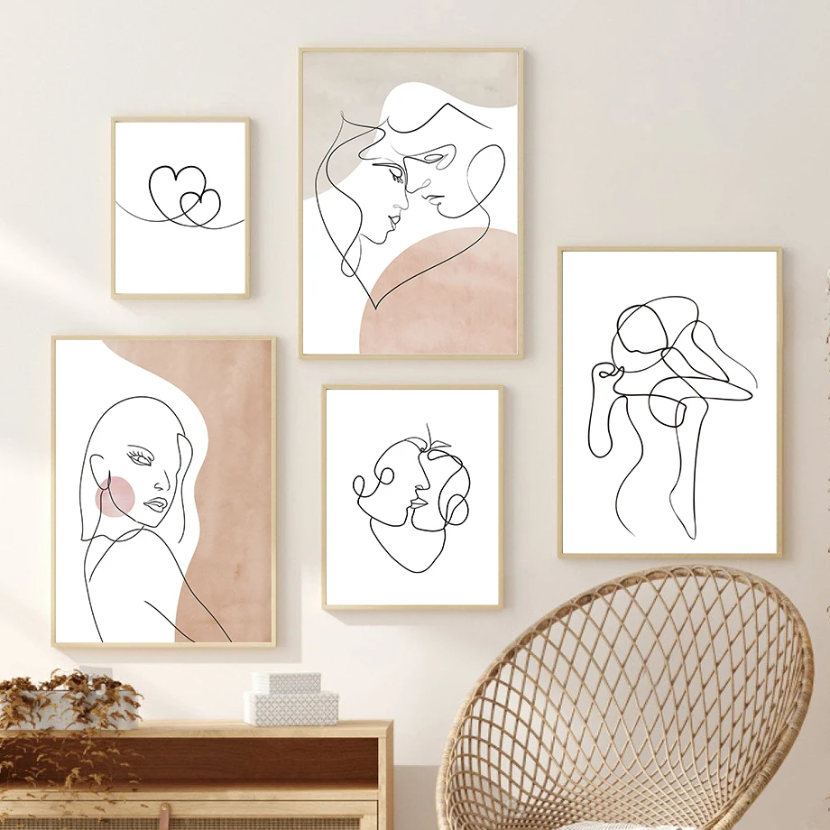 Абстрактные скандинавские постеры и принты Love Heart Hands Line для девочек и мальчиков настенная живопись на холсте для украшения гостиной