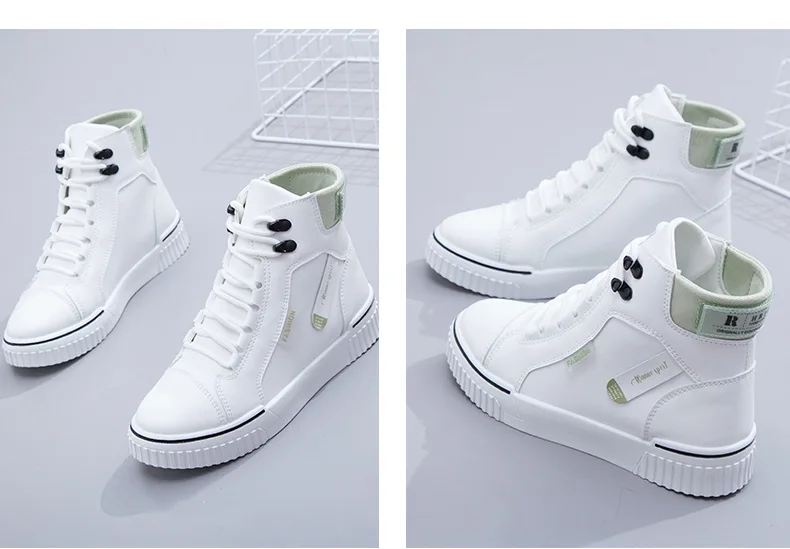 Женские высокие кроссовки на платформе, Вулканизированная массивная подошва, Повседневная модная Осенняя обувь на плоской подошве для отдыха, белые