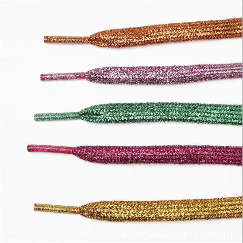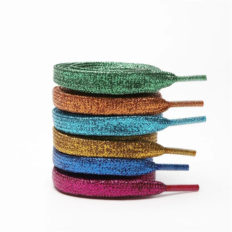 Шнурки унисекс, плоские, блестящие, золотистые, серебристые, черные...