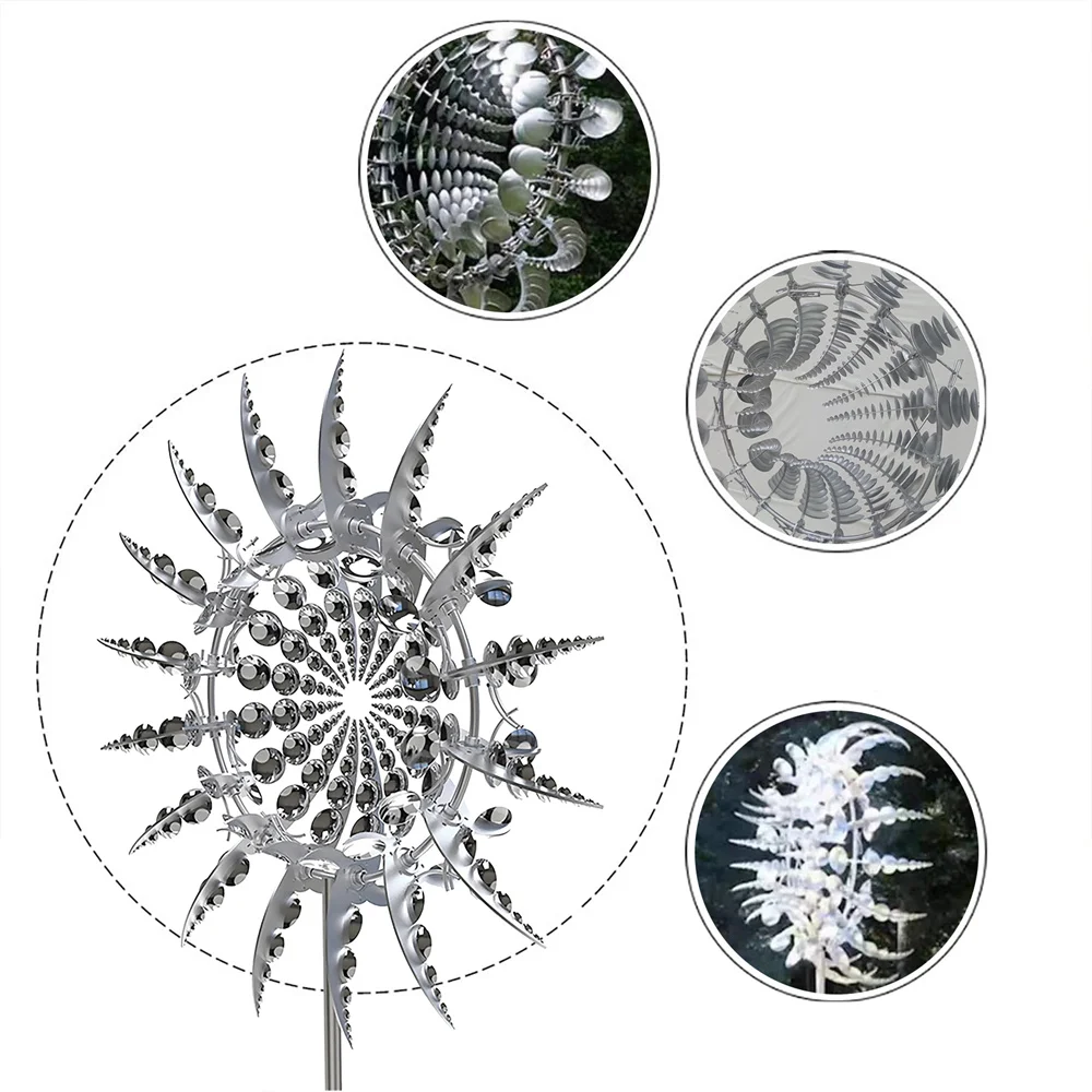 1. Особенный дизайн идеального украшения сада: Каждое лезвие этого вертушка предназначено для вращения в разных направлениях, конструкция шарикоподшипника позволяет нашему ловцу ветра спокойно вращаться даже при небольшом ветре.