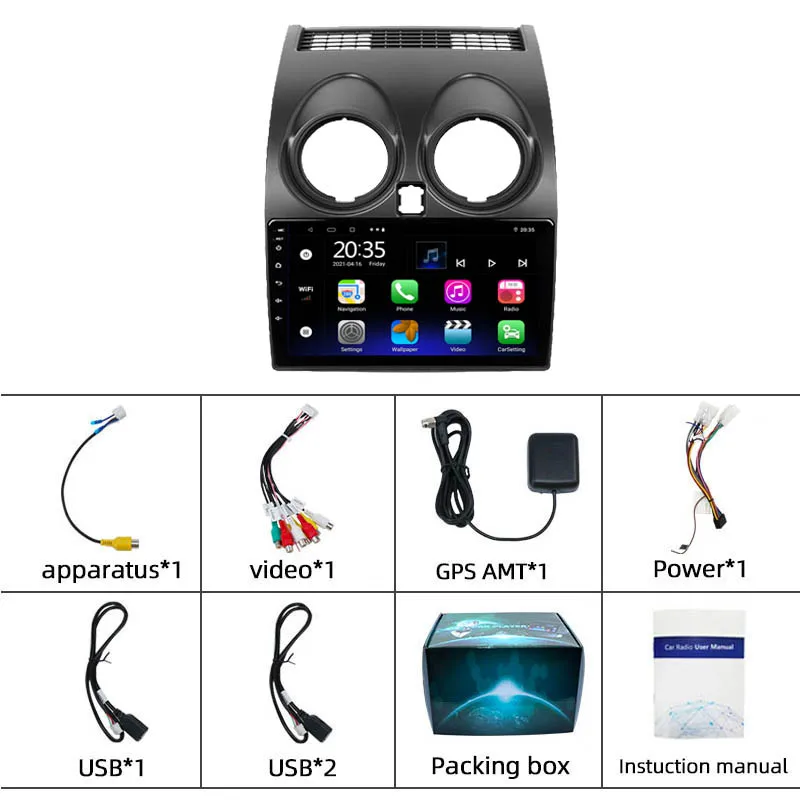 1*4P USB1*6P USB1 * Адаптер питания1 * GPS1 * кабель заднего хода1 * аудио кабель1 * радиоприемник1 * Рамка1 * Инструкция