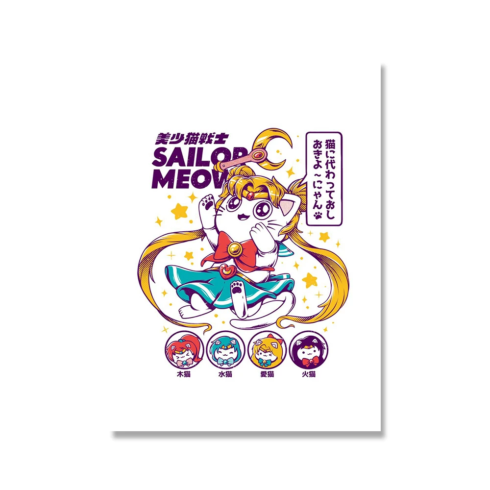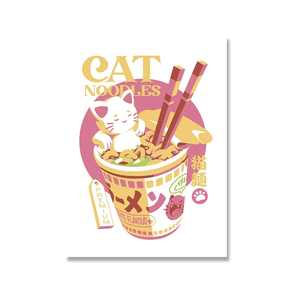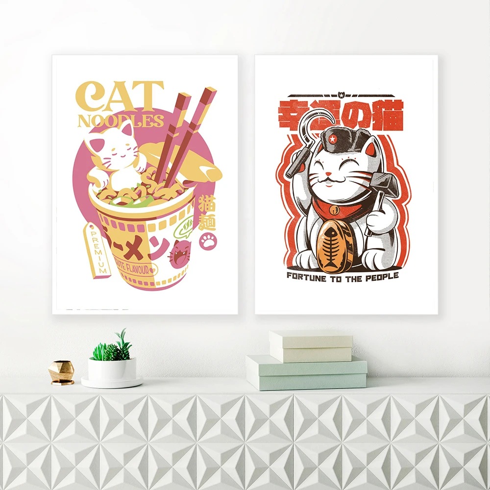 Сейлор мяу рамен мультфильм Кот животные Холст Искусство Живопись Кухня Декор стены картины лапша еда плакаты и принты для детей